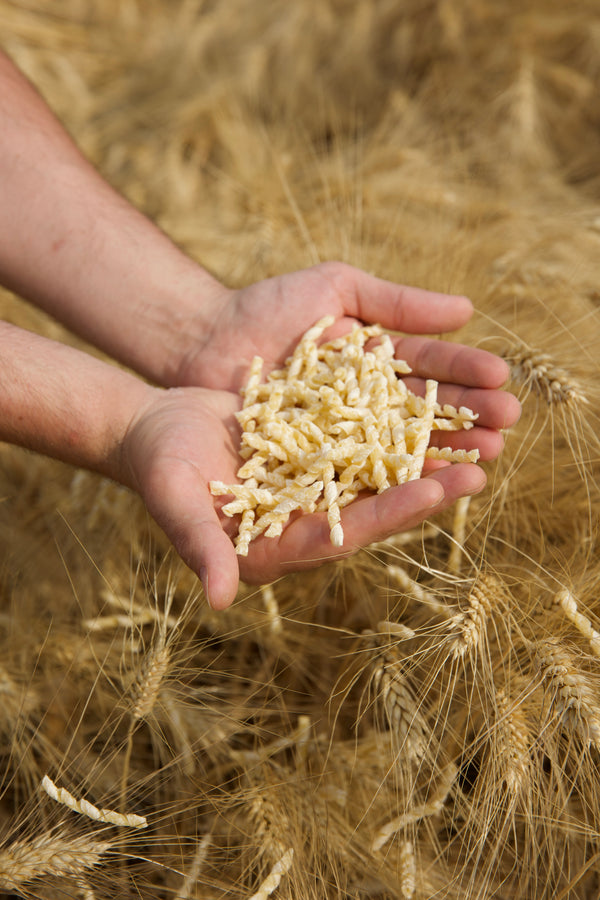 He mills ancient Sicilian wheat slowly to preserve every nutrient. Bronze-drawn and dried for days, his pasta holds your sauce and becomes one with it. The way grain was meant to be honored.