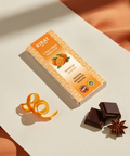 Ingredients: Cocoa paste 50%, brown sugar 25%, orange pieces 25%.